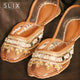 As you wear these beautiful khussas (women's footwear), your feet will be comfortable. The style is more classical and classy. Made of 100% genuine leather. Offers great flexibility for easy walking on all sorts of grounds. This comfortable footwear will keep your feet super relax, which makes it ideal to all seasons.